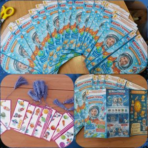 В рамках социального партнёрства с МБОУ СОШ № 11 были разработаны и розданы буклеты и книжные закладки о космонавтах и учёных.
